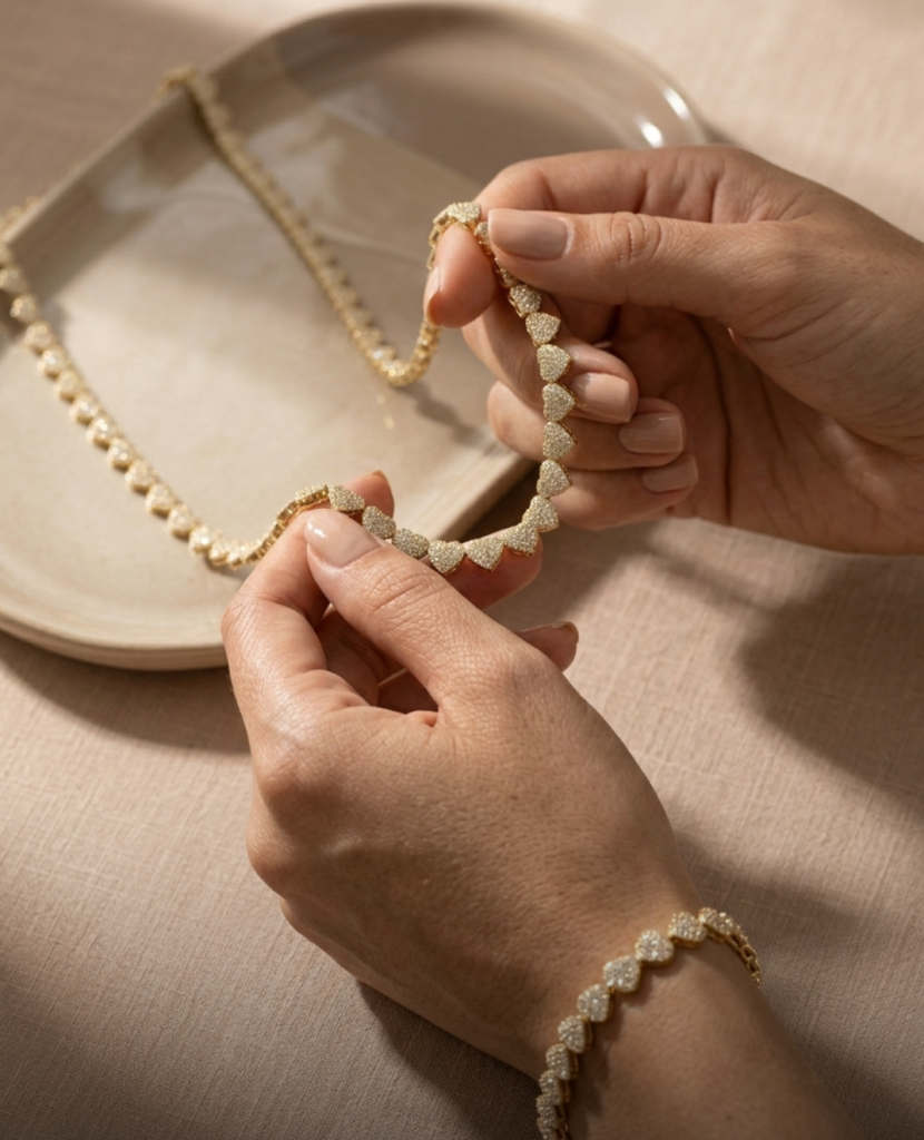 - Layering and pairing: Layering necklaces or stacking bracelets adds movement and depth, allowing light to play across multiple surfaces. Explore our necklace collection for versatile wear or mix and match pieces from our selection of bracelets and cuffs to create a look that’s distinctly yours.